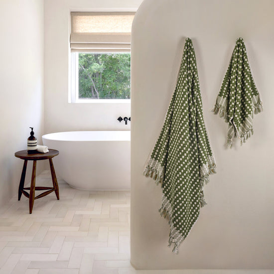 Wrap yourself in comfort with our bubble towels from the Aegean Collection. Crafted from 100% certified organic Turkish cotton, these towels are loomed traditionally and hand-finished with care. Inspired by the serene Aegean coasts, each towel reflects the harmony of olive groves and clear blue waters.