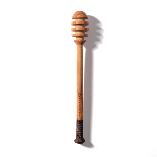 The Olive Wood Ember Grain – Honey Dipper is hand-turned for smooth honey release and detailed with ember-burned accents. Perfect for breakfast and tea rituals. Each dipper is uniquely carved from natural olive wood, offering a smooth handle and deep grooves to collect the perfect amount of honey. Its natural design makes it a beautiful and functional addition to any kitchen.