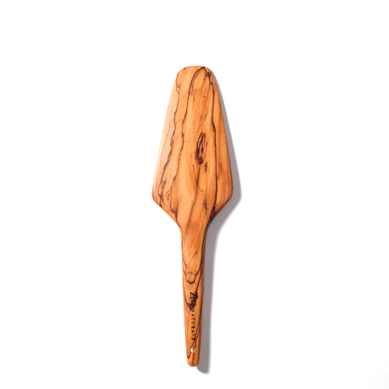 The Olive Wood Craft Series – Triangle Spatula is a beautifully handcrafted serving tool designed for effortless lifting and plating of pizza, cakes, pastries, and delicate slices. Carved from a single piece of natural wood and shaped into a wide triangular blade, it offers exceptional support and balance, making it perfect for clean, precise serving. Each piece is sanded to a smooth, marble-like finish and treated with premium food-safe oils to protect the wood and highlight its organic grain. Elegant, functional, and naturally unique — this spatula brings artisanal warmth to every table setting.